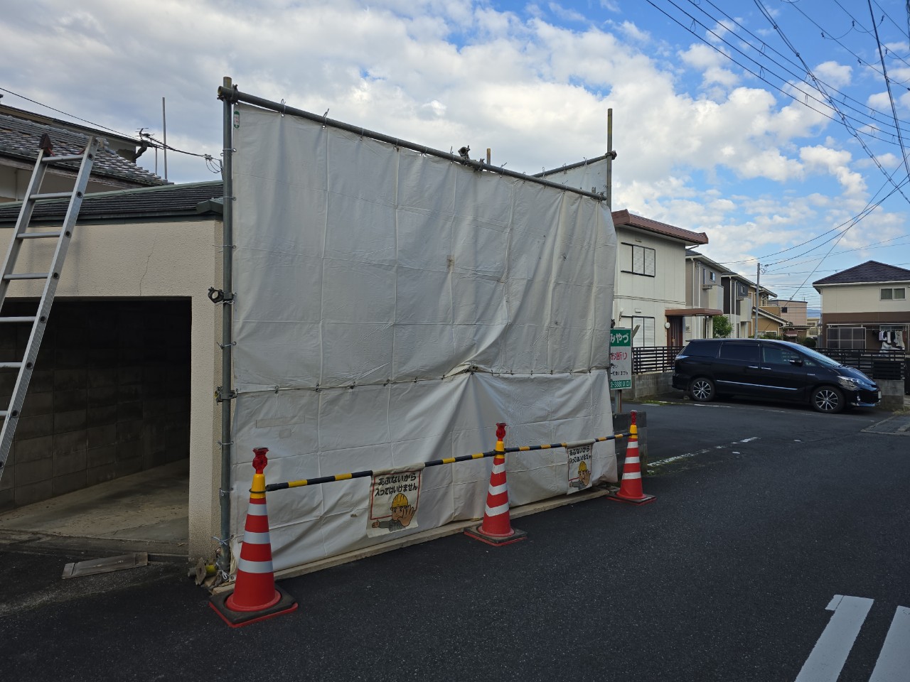 大雪になる前に完了できました。道にぎりぎりの建物もあったので道路許可も取得後に周辺のみなさまにもご協力いただきました。
