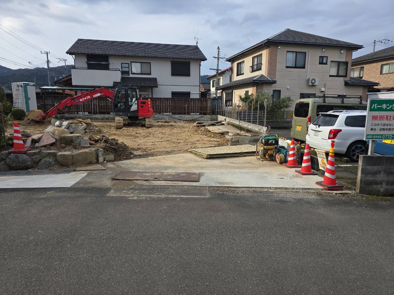 大雪になる前に完了できました。道にぎりぎりの建物もあったので道路許可も取得後に周辺のみなさまにもご協力いただきました。